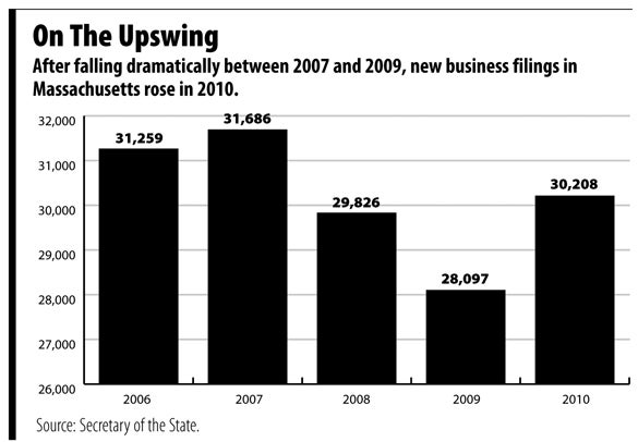 Yet people are doing it. In the six months from Aug. 1, 2010, to Jan. 31, 2011, 14,747 new business incorporations were filed in Massachusetts, 584, or 4 percent, more than in the same period a year before. For the entire year, new business filings were up more than 7 percent.