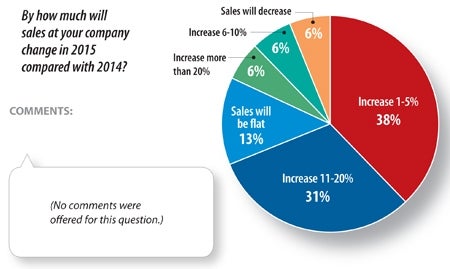 When we conducted our annual Economic Forecast survey for 2015 in November, four in five respondents projected revenue increases this year. More recently, a PricewaterhouseCoopers survey of private companies found that they expect a healthy, on average, 9.2-percent revenue growth this year. Now that we’re about six weeks into 2015, those optimistic outlooks continue to prevail, with about 37 percent predicting double-digit percentage gains.