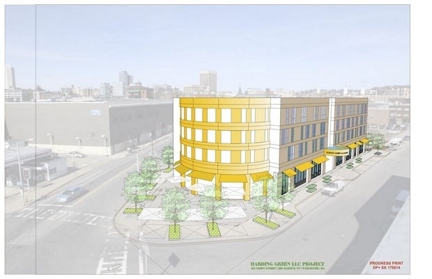 Harding Green will also feature 48 apartments in three floors above the market. Construction began in May and is expected to be complete by next summer. The site, next to BirchTree Bread Co., Crompton Collective and other retailers, has been vacant since buildings on the site were torn down in 2011.
