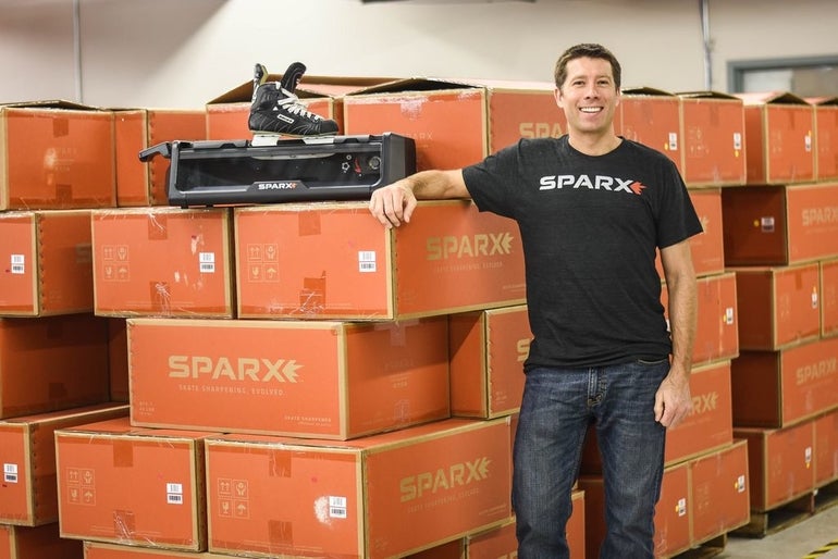 Sparx Hockey, which hit the market in 2016, has quickly spread in the hockey world, selling to 25 of the National Hockey League’s 31 teams, including the Boston Bruins, as well as minor league and collegiate teams. Players today will often switch skate blades multiple times a game, requiring quick and consistent blade-sharpening, a need Sparx has filled.