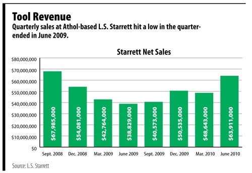 Shaughnessy said most of the people stuck with the company despite the reduction of hours. In part, he said, that was because Starrett had been busy before the downturn so workers had been taking significant overtime, and that meant they got relatively high unemployment compensation.