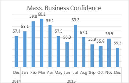 In its monthly Business Confidence Index, the Associated Industries of Massachusetts (AIM) found that December shed 1.6 points to close out 2015 two points below the level at the end of 2014.