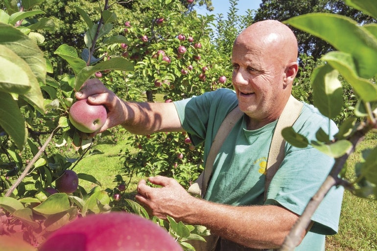 “Nice and juicy,” Charles Koshivas said of the apples at Fairmount Fruit Farm in Franklin.