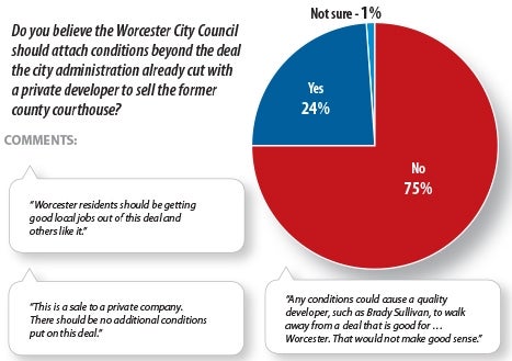 After two weeks of delays, the Worcester City Council last week approved a deal to sell the former county courthouse to a New Hampshire developer for $1.2 million. But the deal now includes language that calls for, among other things, the hiring of at least half the construction workforce by contractors and subcontractors from within a 30-mile radius. The language was inserted after community and labor advocates pressed the council to review the deal. Just hours before the council’s vote, we posed this question:
