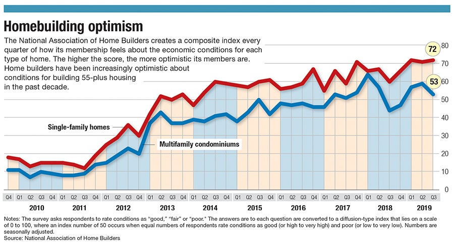 The National Association of Home Builders estimated by last year homes headed by someone 55 or older would constitute more than 45% of all American households.