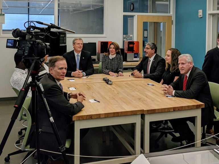 Baker, Peyser and Santiago, along with Lt. Gov. Karyn Polito, met with three QCC students just before formally announcing the funding to hear their stories.