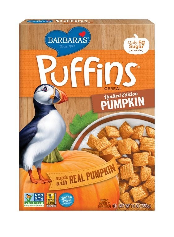 The company, which makes cereals, granolas and other snack foods, said it will bring back Pumpkin Puffins after overwhelmingly positive feedback from retailers last year. The cereal will be on shelves through December or however long supplies last, according to the company.
