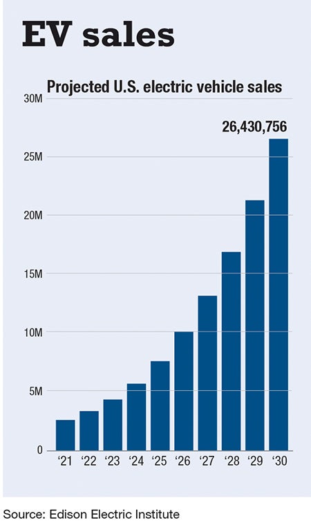 Electric vehicle sales are outpacing projections, said Charles Satterfield, senior manager of electric transportation with the national electric utility trade organization Edison Electric Institute.