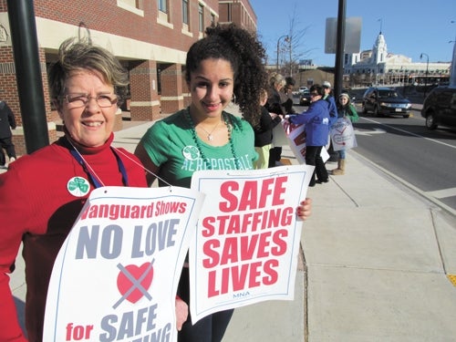 Marie Ritacco, a registered nurse at the hospital who is a member of the bargaining committee with the Massachusetts Nurses Association, said she thinks Saint Vincent has been trying to play on the fact that many workers are in rough shape these days, and on the anti-union efforts in Wisconsin and elsewhere.