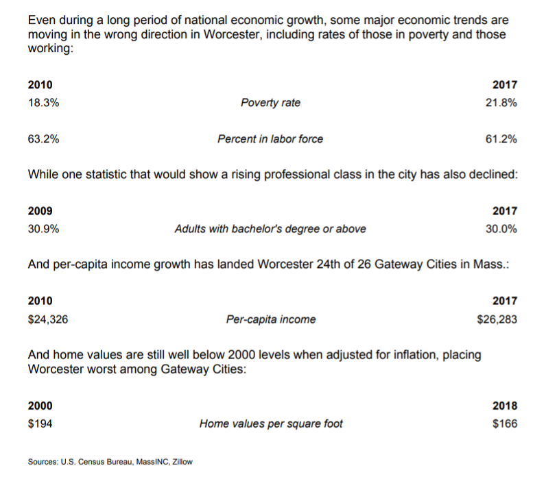 “Worcester has been said to be on the rise for years without a dramatic change to prove it,” Boston think tank MassINC said in an August 2018 report.