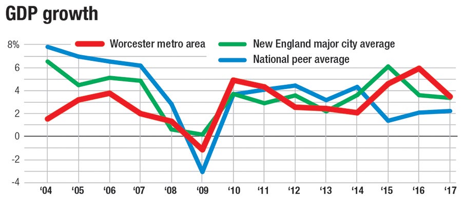 But the national GDP slowed in the second quarter as well, and Greater Worcester is lagging behind that growth, White said.