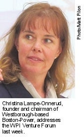 At a Worcester Polytechnic Institute Venture Forum gathering last week, Boston-Power international chairman and founder Christina Lampe-Onnerud explained the reasoning behind the Westborough-based battery maker’s decision last year to shift approximately 30 of its Central Massachusetts jobs to new facilities in China, a move she admits came with hesitation.