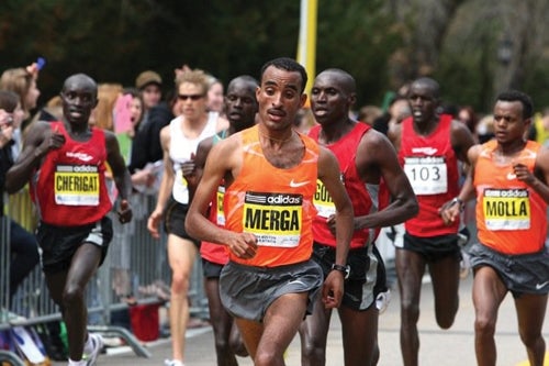 Each runner, Meany said, wears a small chip during the race. There are more than 10 checkpoints throughout the 26.2-mile race that runners pass. At each one the runner’s time is automatically fed into a large server Versatile has set up in the Copley Plaza Hotel.