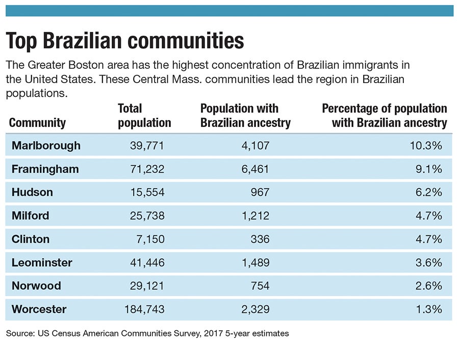 Overall, Massachusetts is one of the biggest destinations in the U.S. for people from Brazil. And Brazilians are among the most-represented immigrant groups throughout communities in Central Massachusetts.
