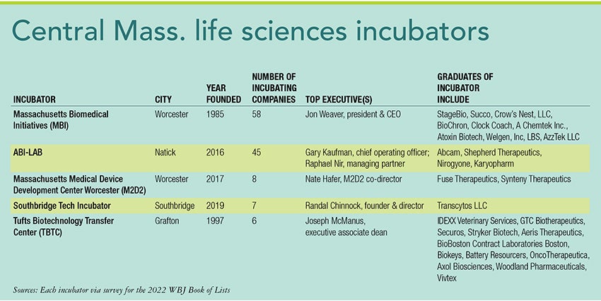 In fact, there are already strong clusters in Central Massachusetts to complement those in Boston. UMass Chan Medical School has its own incubators alongside those going on at MBI. It has the Massachusetts Medical Device Development Center, which partners with UMass Lowell, as well as other companies in the incubation process.