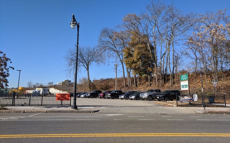 The triangle-shaped site off Green Street next to the raised railroad track overpass will be remade with new paving and sidewalks and be available for retail, food and entertainment uses. The lot, which is about two-thirds of an acre, will include a decorative water feature in tribute to the Blackstone Canal once flowing through the neighborhood and giving it its name.