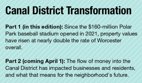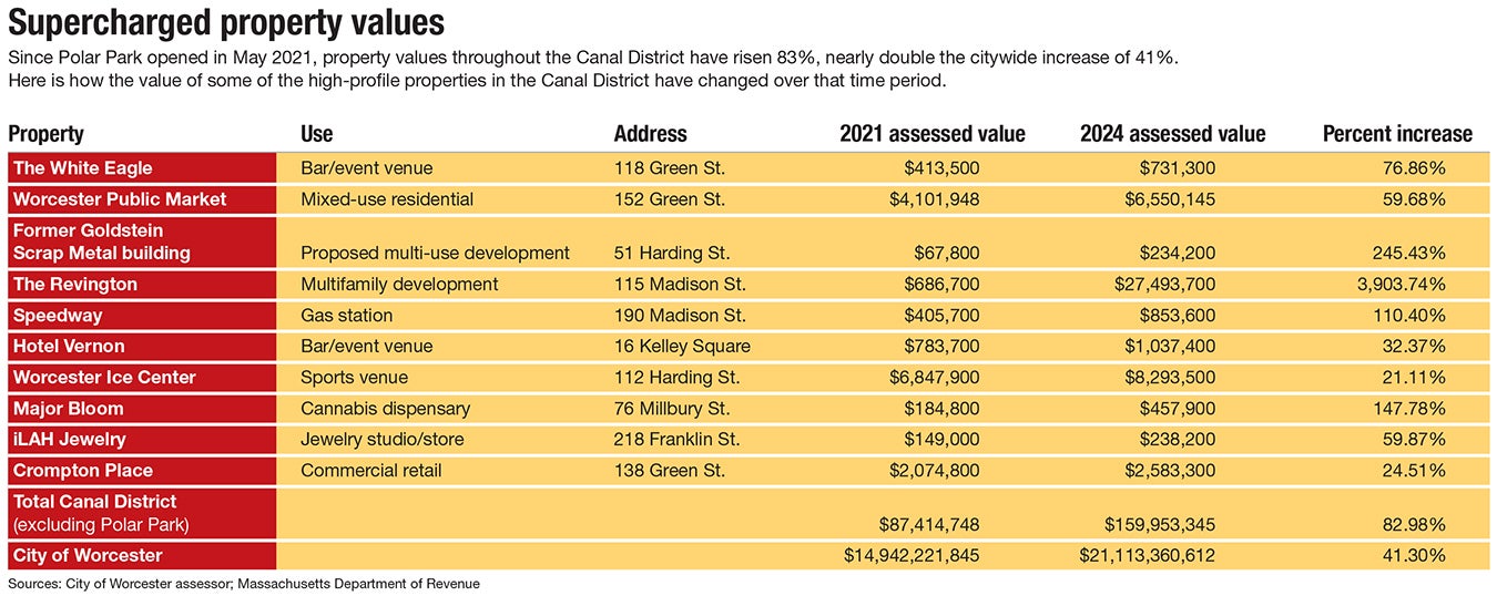 Since the publicly owned Polar Park stadium opened in 2021, the value of the Canal District has risen at more than double the rate of the city, according to a WBJ analysis of more than 200 properties within the district.