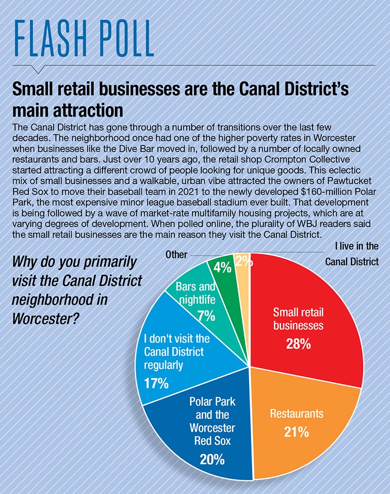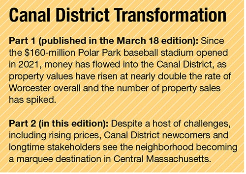 The Canal District has seen much transformation since 2010, evolving from a rundown and overlooked section of the city to a trendy neighborhood complete with quirky businesses operated by an eclectic mix of small-business entrepreneurs. Now, a flood of new residents, the construction of the Polar Park baseball stadium, and a wave of development have shone the next spotlight on the neighborhood, driving up real estate prices and permanently altering the district’s landscape in the process. Developers and business owners expect that growth to continue, saying new businesses and even more residents will soon make the area home, creating the next chapter in the long history of the Canal District.