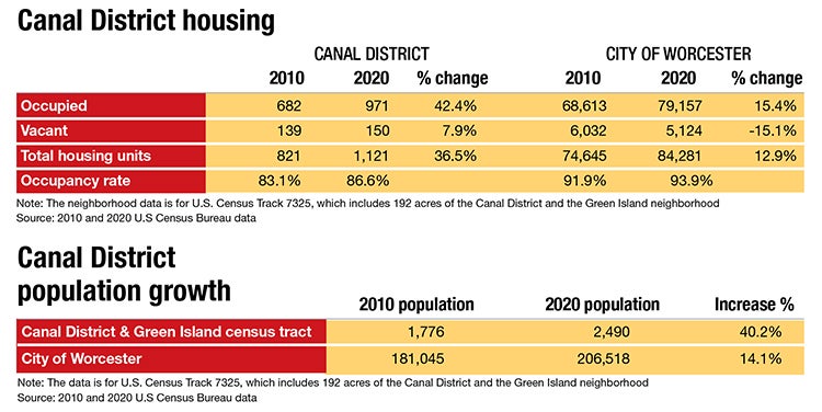 But the changing nature of the Canal District, even before the completion of Polar Park, isn’t just captured in the dollars and cents of property sales and assessment valuations, as data from the U.S. Census Bureau provides insight on how the neighborhood changed from 2010 to 2020, before the stadium opened in 2021.