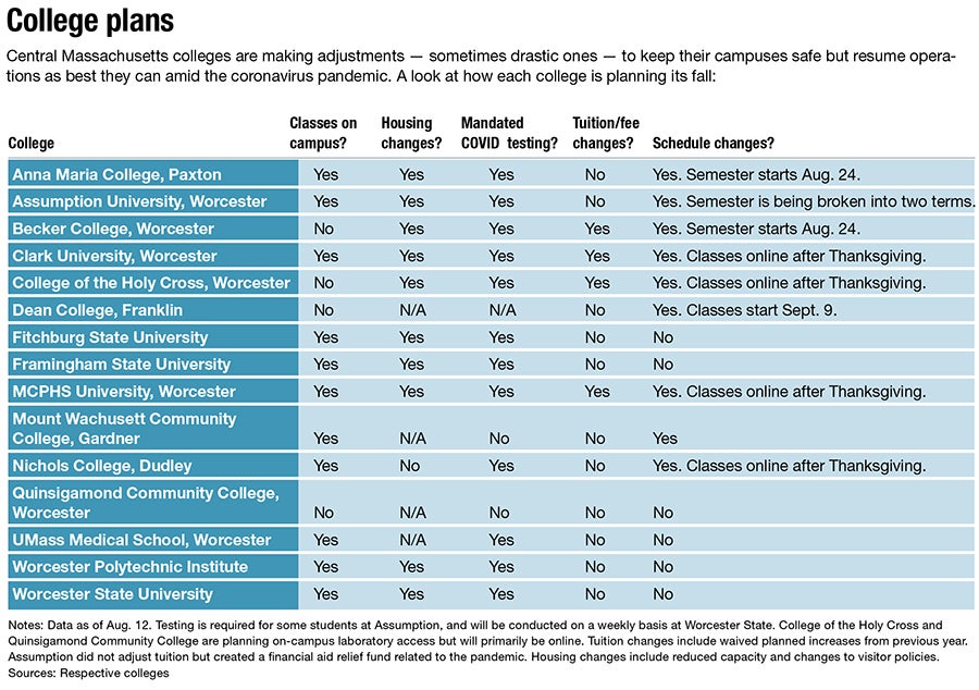 It’ll be a semester quite unlike anything Central Massachusetts has seen before, and one requiring colleges to balance safety during a pandemic with a hopeful return to somewhat normal operations.