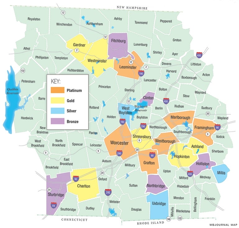 Holliston has a bronze rating, hurt in part by a lack of a town-wide sewer system or commercial- or industrial-zoned areas. The town lost a potential business because Holliston doesn’t have direct highway access, said Jeff Ritter, the Holliston town administrator.