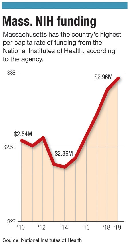 Massachusetts has the highest per-capita NIH funding in the U.S., with nearly $2.9 billion in fiscal 2019 alone.