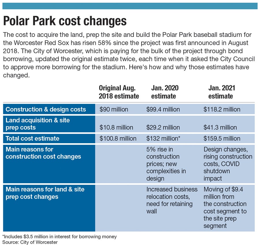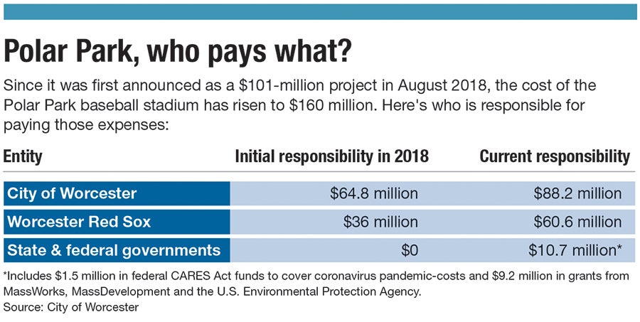 Yet, despite the latest estimate rising to $159.5 million on Jan. 8, the city’s cost responsibilities remained relatively the same as they were in January 2020. With the new expenses, the WooSox are picking up the construction expense increase, and state and federal grants offset other aspects of the project.
