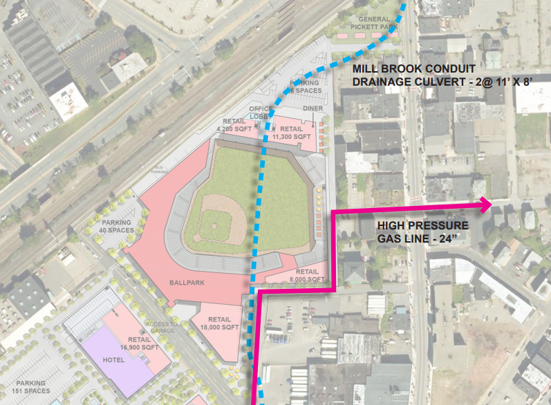 A stadium would be built mostly on a hillside parking lot, and where five commercial buildings once stood in the Canal District. The team would start play in its new home in April 2021, since its stadium lease in Pawtucket ended in 2020.
