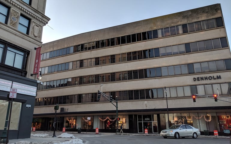 The Denholm building spans 200,000 square feet from 484-500 Main Street and is divided into condominium units, most of which have been used by nonprofits like United Way of Central Massachusetts, African Community Education, Big Brothers Big Sisters of Central Massachusetts, and the Southeast Asian Coalition of Central Massachusetts.