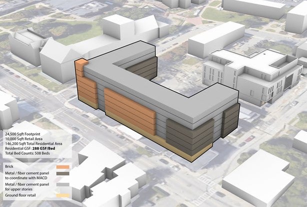 In the place of the buildings, Clark aims to build a seven-story, 156,000-square-foot residential and retail building, adding 508 beds for students and 10,000 square feet of first-floor retail, according to a filing with the Worcester Historical Commission.