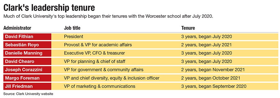 Chearo and Corazzini aren’t the only newcomers to Clark’s administration; all six of the university’s vice presidents arrived with or after President David Fithian took office in July 2020.
