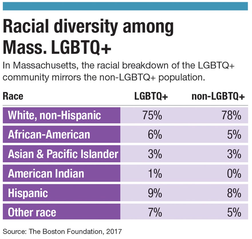 According to the Boston Foundation’s “Equality and Equity Advancing the LGBT Community in Massachusetts” study, 5% of the state’s population reports being part of the LGBTQ+ community. However, the Boston Foundation said in its report this number is likely much higher.