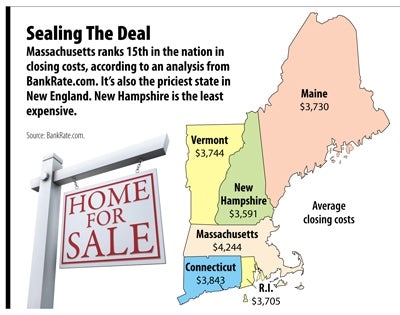 Massachusetts is the 15th costliest state in the nation when it comes to closing costs for buying a home, according to a report by Bankrate.com, a national financial advice website.