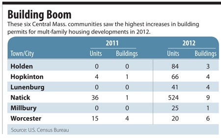 Central Massachusetts communities were among the 24 in the Bay State that had more than 50 permits pulled last year, with some of those cities and towns seeing significant action compared to 2011.