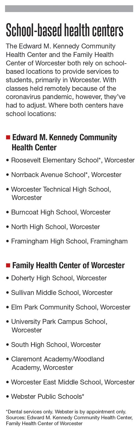 In many cases, the nurse practitioners or others who staff such school-based centers have been spending much of the pandemic calling students at home to either simply check in on how they’re doing or to set up times to stop by clinics. In normal times, locations in schools are a major part of both community health centers’ operations: Kennedy has six, including five in Worcester and one in Framingham, and Family Health Center has eight, including seven in Worcester and a dental program in Webster.