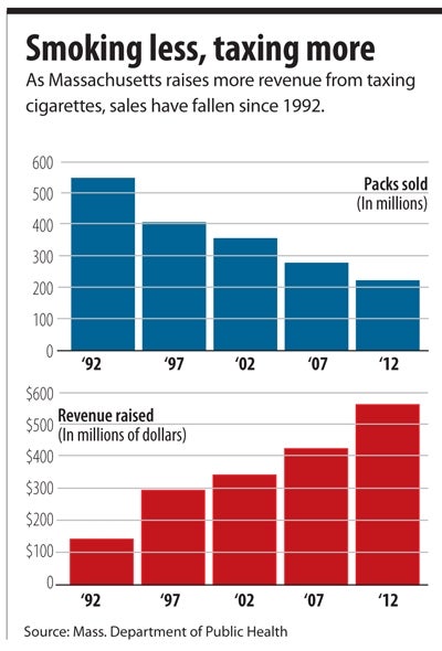 Government action can prod and discourage, but that alone will not snuff out tobacco use. Last year, Massachusetts raised its cigarette tax from $2.51 to $3.51 per pack, the second-highest levy behind New York, which charges $4.35. But while cigarette sales in the Bay State plummeted nearly 60 percent from 1992 to 2012, an estimated 221 million packs were sold in 2012, according to the Massachusetts Department of Public Health. And according to the Centers for Disease Control, the Bay State ranked ninth among the states in 2011 in adult tobacco use, with an estimated 18.2 percent of adult cigarette smokers.