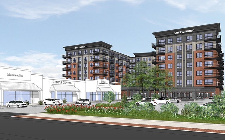 The 218-unit building will be constructed behind the current commercial buildings on the property, occupied by InHouse Coffee, Digital Federal Credit Union, Mexicali Cantina Grill, and others, according to plans submitted to Worcester Zoning Board of Appeals for its Monday meeting.