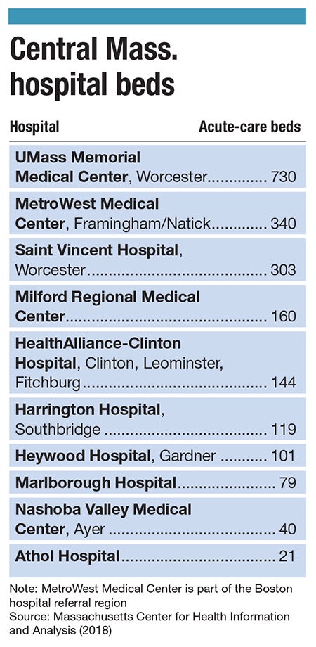 Central Massachusetts is projected to have among the biggest shortfalls in the number of available beds in the country, virtually no matter how hard the coronavirus pandemic hits.