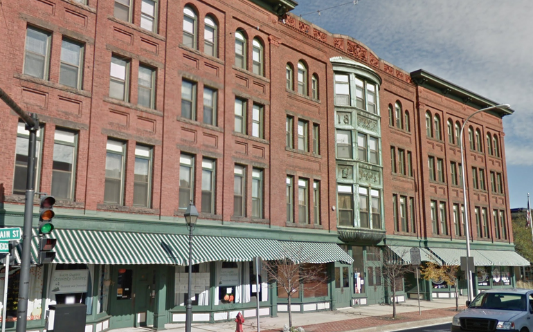 The four-story building, with its elaborate brick facade and bay windows, was built in 1895 and is included in the National Register of Historic Places. It includes the Athol Council on Aging and the barber shop Privilege 351, along with upper-floor apartments.