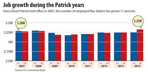 How will the state continue to grow jobs, especially in industries such as life sciences and clean energy, where Massachusetts has emerged as a leader? Since Patrick was inaugurated in 2007, the number of employed Bay State residents has risen 11 percent, despite the fact that the Great Recession caused a loss of about 111,000 jobs by the end of 2009. All those lost jobs came back as of last March and the job gains have kept on coming since.