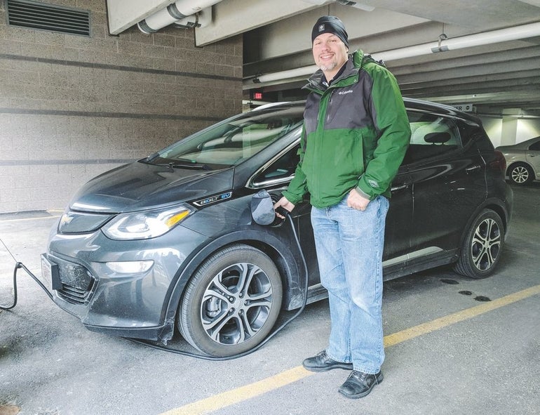 He can’t remember the last time he went to a gas station. He charges his all-electric Chevy Bolt for free at work.