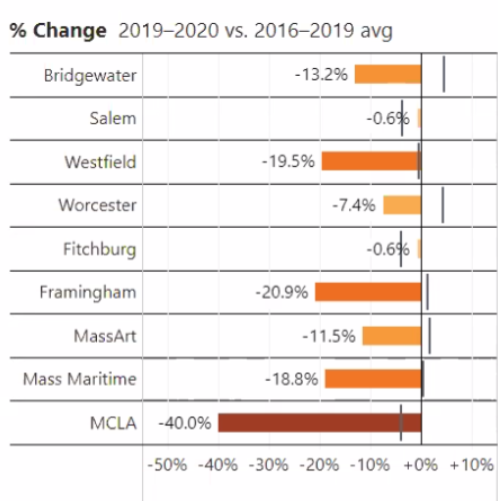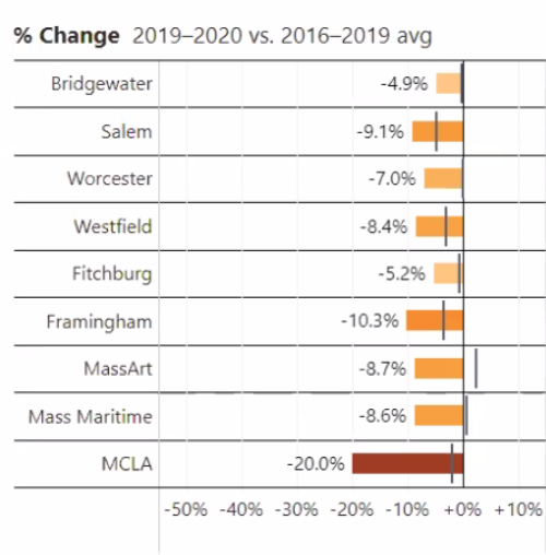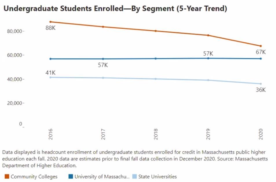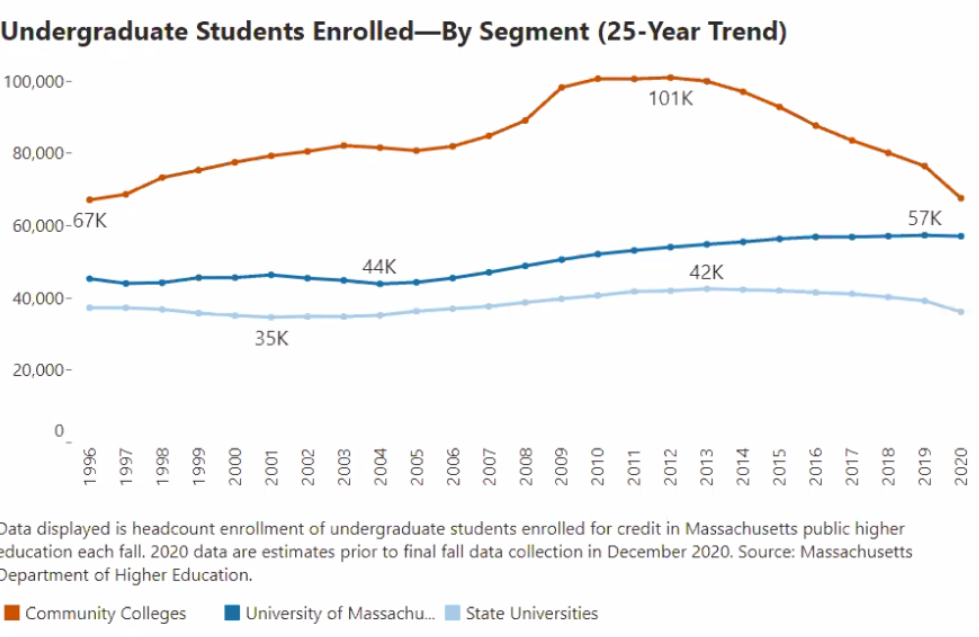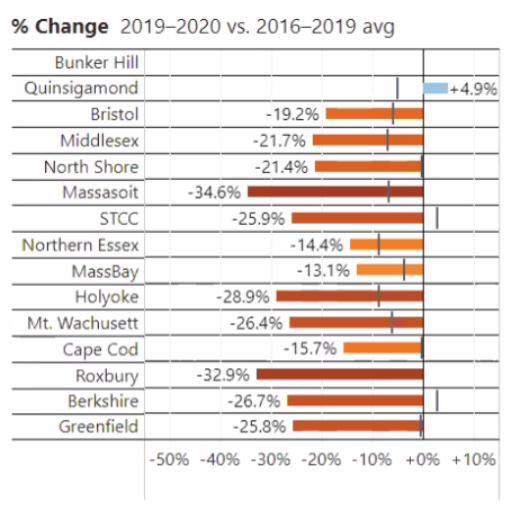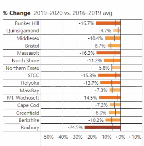 Statewide, from community colleges to the University of Massachusetts, enrollment this fall dropped by 7.1%.