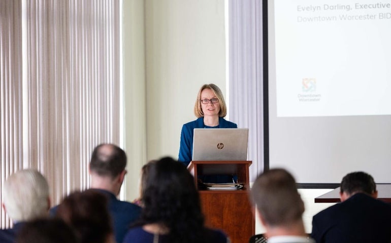 Evelyn Darling, executive director of the Downtown Worcester Business Improvement District, is stepping down from the role, as the organization has tapped a consulting firm to help find its next leader.