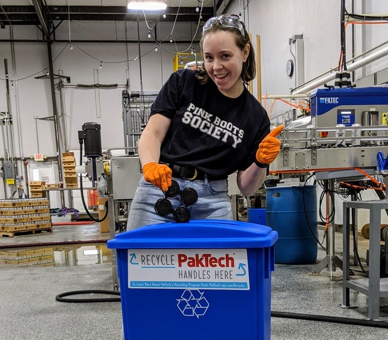 “The PakTech holders are HDPE Grade #2, which is a highly desired reusable plastic. By ensuring the purity of the plastic we are sending out, it’s not hard to find a facility that will reprocess it,” said Kelsey Roth, Exhibit ‘A’ Brewing general manager.