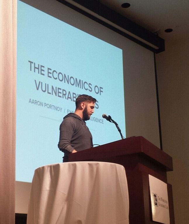 “You can make a significant career out of this,” cyber security expert Aaron Portnoy told the audience at a meeting of the Worcester Economic Club where he was a guest speaker Wednesday night. “The market is blowing up.”