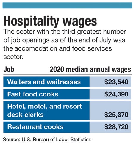 Because the sector is so outwardly facing, the food service industry has received outsized attention for its unemployment rate (9.4% nationally in August) and the impact it’s having on employers and customers. The median average annual income for food prep workers and servers, including fast food, is $23,440, nationwide.