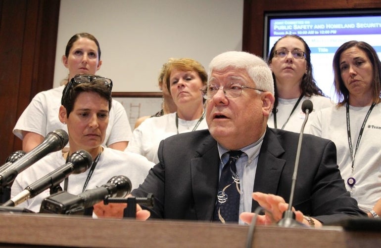 Tracy DiGregorio, a registered nurse and Wilson’s colleague, said Harrington installed metal detectors and panic buttons, and the hospital is in the process of locking down its perimeter. She read a statement from Wilson that said, “Things at my hospital have changed immediately, but there are so many other health care workers out there getting threatened and assaulted every day.”