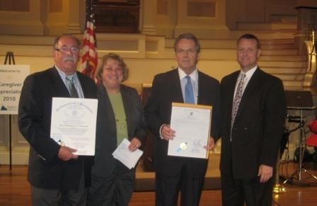 State Sen. Michael O. Moore, D-Millbury, and Rep. James O’Day, D-West Boylston, presented citations from the Legislature to Patrick Hughes, president and CEO of FCHP, and Karen Longo, executive director of Summit ElderCare, at a special event held at Mechanics Hall in Worcester.