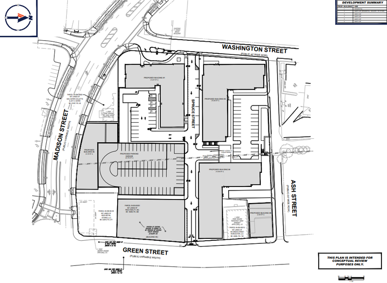 Developers sung the praises of constructing a one-way street through the middle of the property, which will run from Washington Street to Green Street, parallel to Ash Street. The new road, Spruce Street, will offer greater walkability and on-street parking, said Mazzocchi.