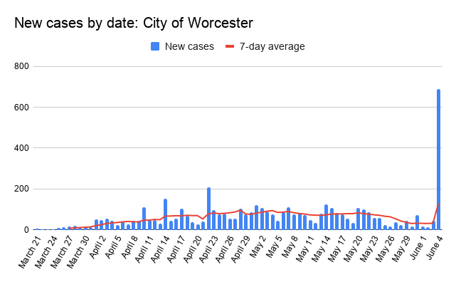 The revised total puts Worcester in an even more pronounced standing as a city especially hard hit by the pandemic. The city has twice as many cases as the whole state of Maine, according to the U.S. Centers for Disease Control and Prevention, or roughly as many as six states or territories combined: Vermont, Guam, Hawaii, Alaska, Montana and Wyoming.
